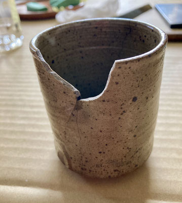 知り合いの陶器屋さんから買った湯呑。買ったその日に落として割ってしまいました。